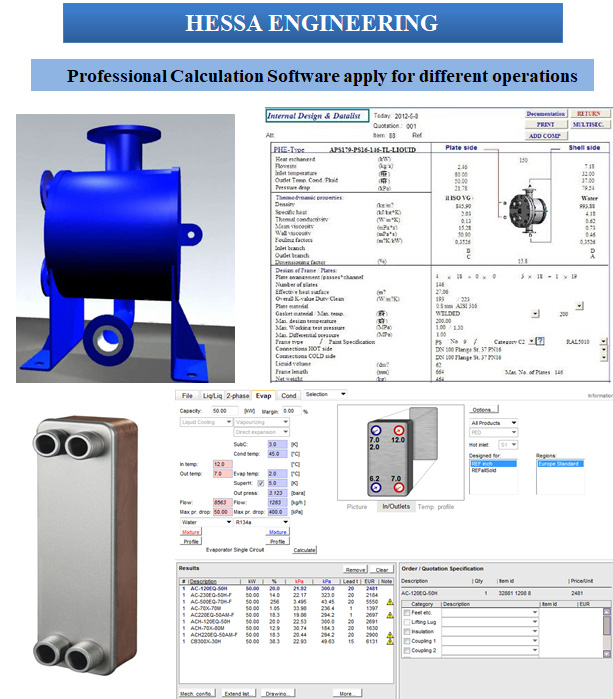 Who have profound experience in specific practical applications (HVAC, Petro-chemical, Power Plant, Marine), Identify Heat Exchanger Category according to individual application case, Engineering Executing thermal calculation by Software and then refine design combined by working situation and applicable experience.