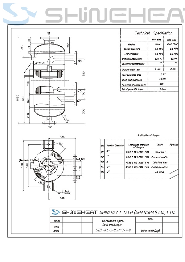 SHINEHEAT SPIRAL PLATE HEAT EXCHANGER SUPPLY SCOPE
