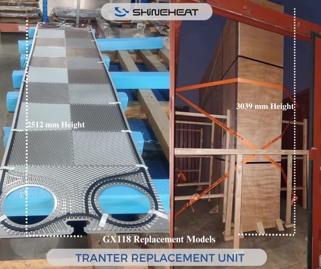SHINEHEAT Replacement Solution for Tranter Plate Heat Exchangers: SHINEHEAT is in offering a complete replacement solution for Tranter Plate Heat Exchangers, including the GX118 model. Our extensive range covers the entire Tranter series, providing customers with a one-stop-shop for their replacement needs. Whether it's a like-for-like replacement or an upgrade to a newer model, SHINEHEAT delivers tailored solutions to meet specific requirements.