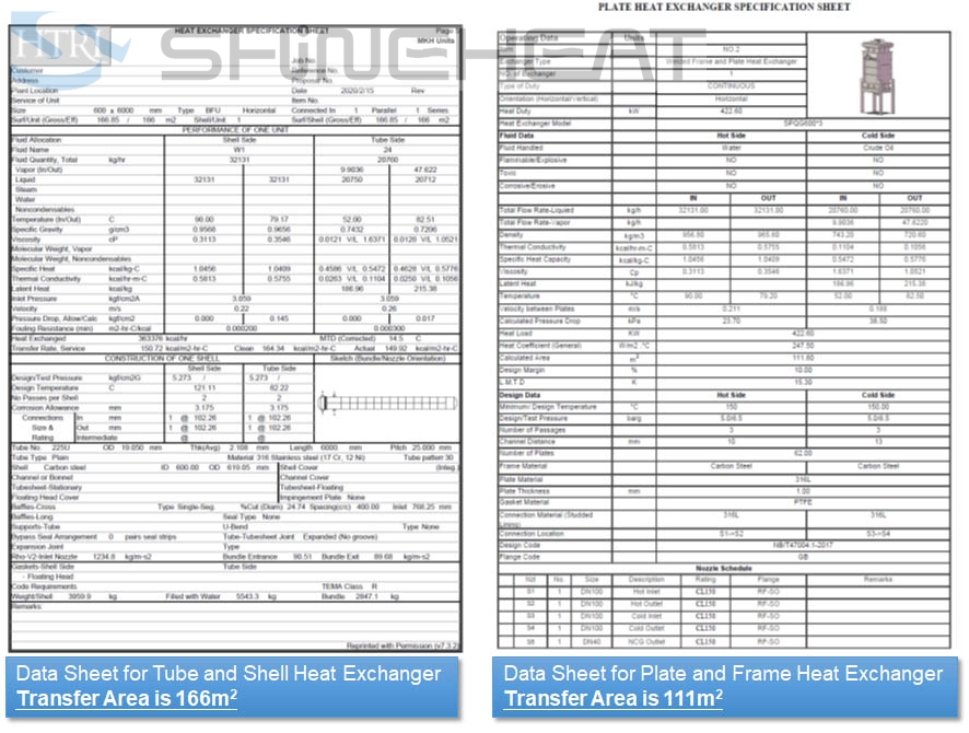 Data Sheet for Old “Tube and Shell Heat Exchanger” and New “Plate and Frame Heat Exchanger”