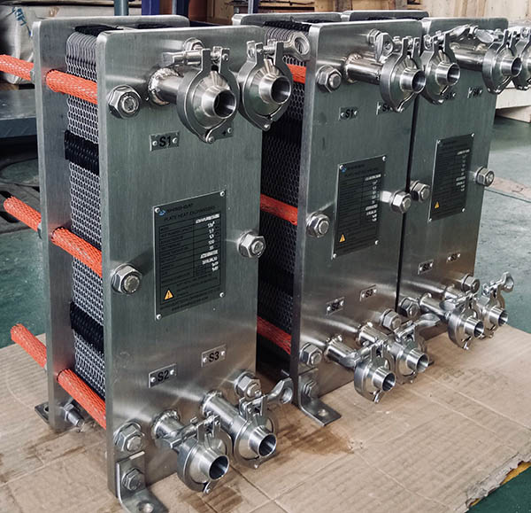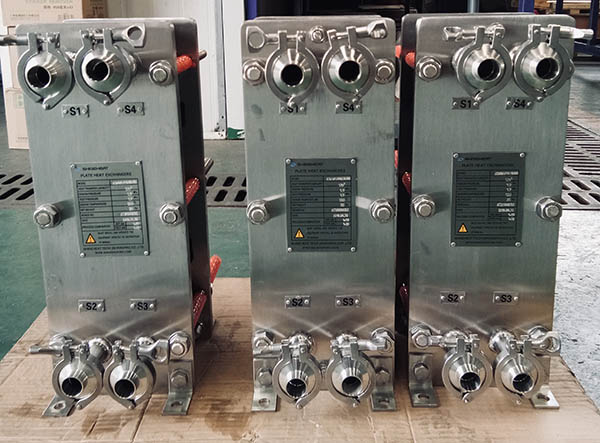 The Plate Heat Exchanger requests high Sanitary Standard in view Dusty-free plant conditions. The entire frame for Plate Heat Exchanger need to be Sanitary Frame, so we used Solid SS304 Stainless Steel as frame, with Sanitary Quick Coupler connection.