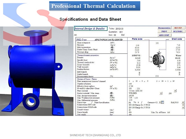 Based on Expert engineer thermal calculation by profressional software, we will offer technical solution by thermal data sheet. Meanwhile, we will proposal the premium structure design for Plate and Shell Heat Exchanger.